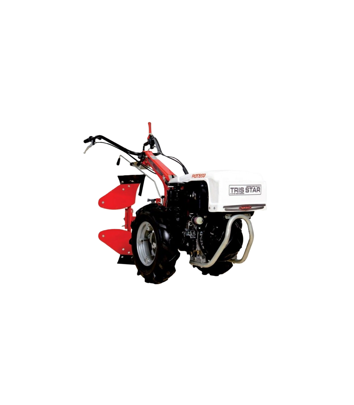 El motocultor Roteco Trisstar es una herramienta versátil y robusta diseñada para facilitar el trabajo en el campo. Con un motor potente y fiable, este motocultor ofrece una amplia gama de funcionalidades para el cultivo eficiente del suelo. Su anchura de trabajo de 85 cm permite adaptarse a diferentes tipos de terrenos y necesidades de cultivo. Equipado con un grupo de cambio de fundición modular, el Trisstar proporciona 6 velocidades (3 hacia adelante y 3 hacia atrás), garantizando flexibilidad y control en todo momento. Las ruedas reversibles de 5.0 x 10 y el diferencial con bloqueo aseguran una excelente tracción y maniobrabilidad. Además, cuenta con un sistema Antishock para reducir las vibraciones y un embrague activo EasyForce para un manejo más sencillo y cómodo.